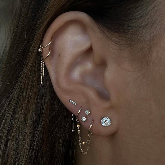 Delicate studs, threadless ends, and tiny hoops designed for tragus piercings. Comfortable, secure, and stylish pieces that add the perfect finishing touch to your ear.