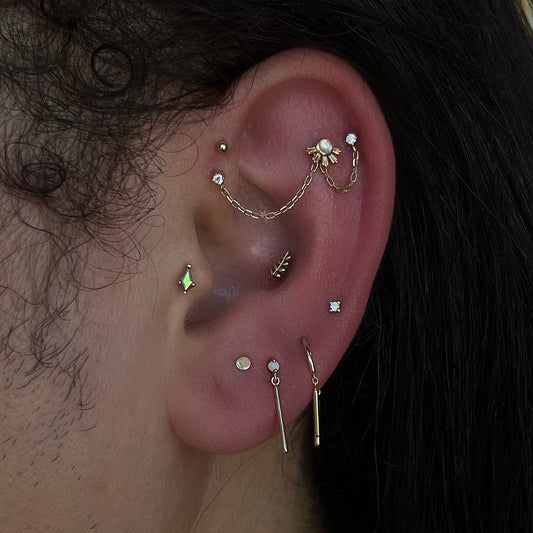 Delicate studs, threadless ends, and tiny hoops designed for tragus piercings. Comfortable, secure, and stylish pieces that add the perfect finishing touch to your ear.
