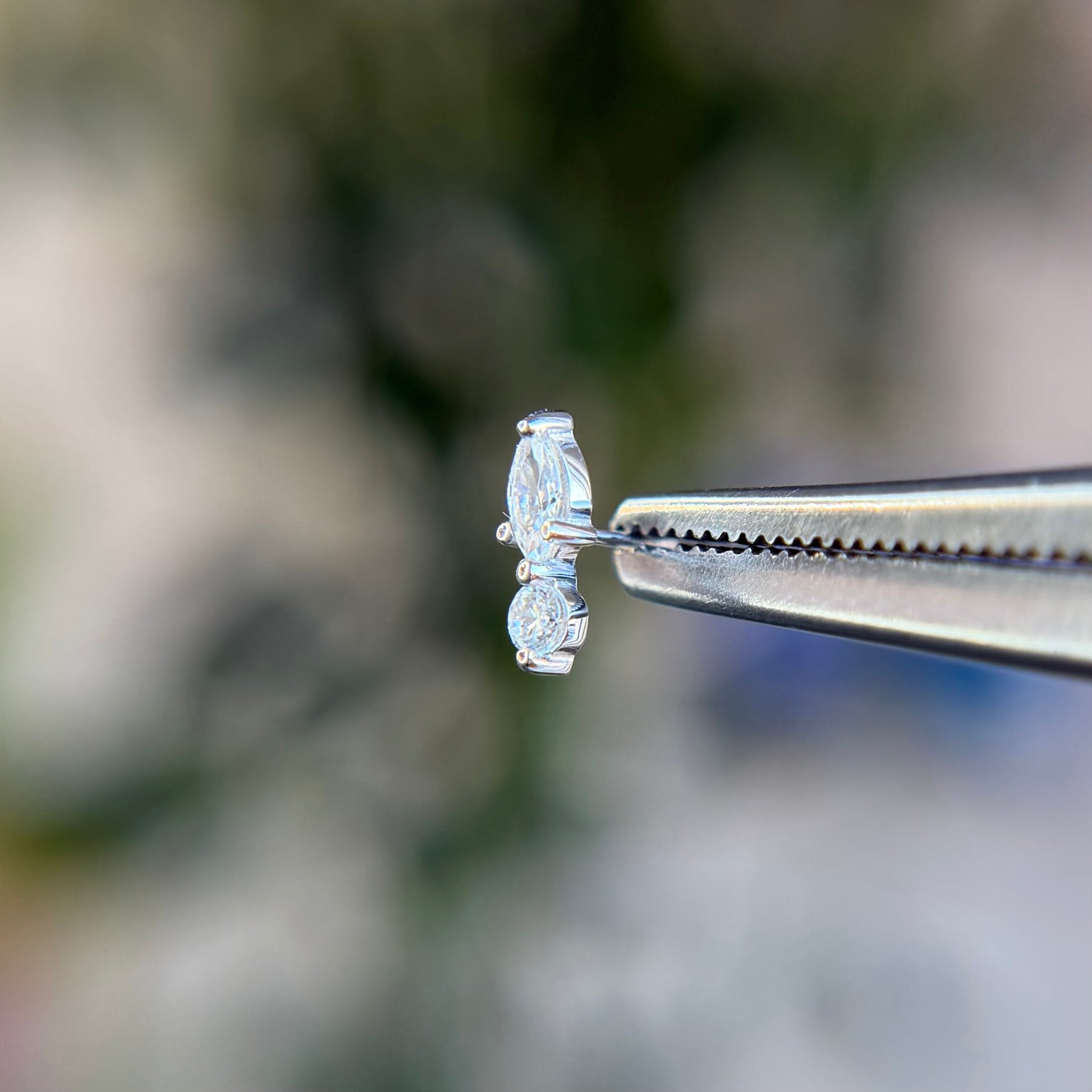 - (1) 4.0mm x 2.0mm Marquise Cut CZ & (1) 2.0mm Brilliant Round CZ