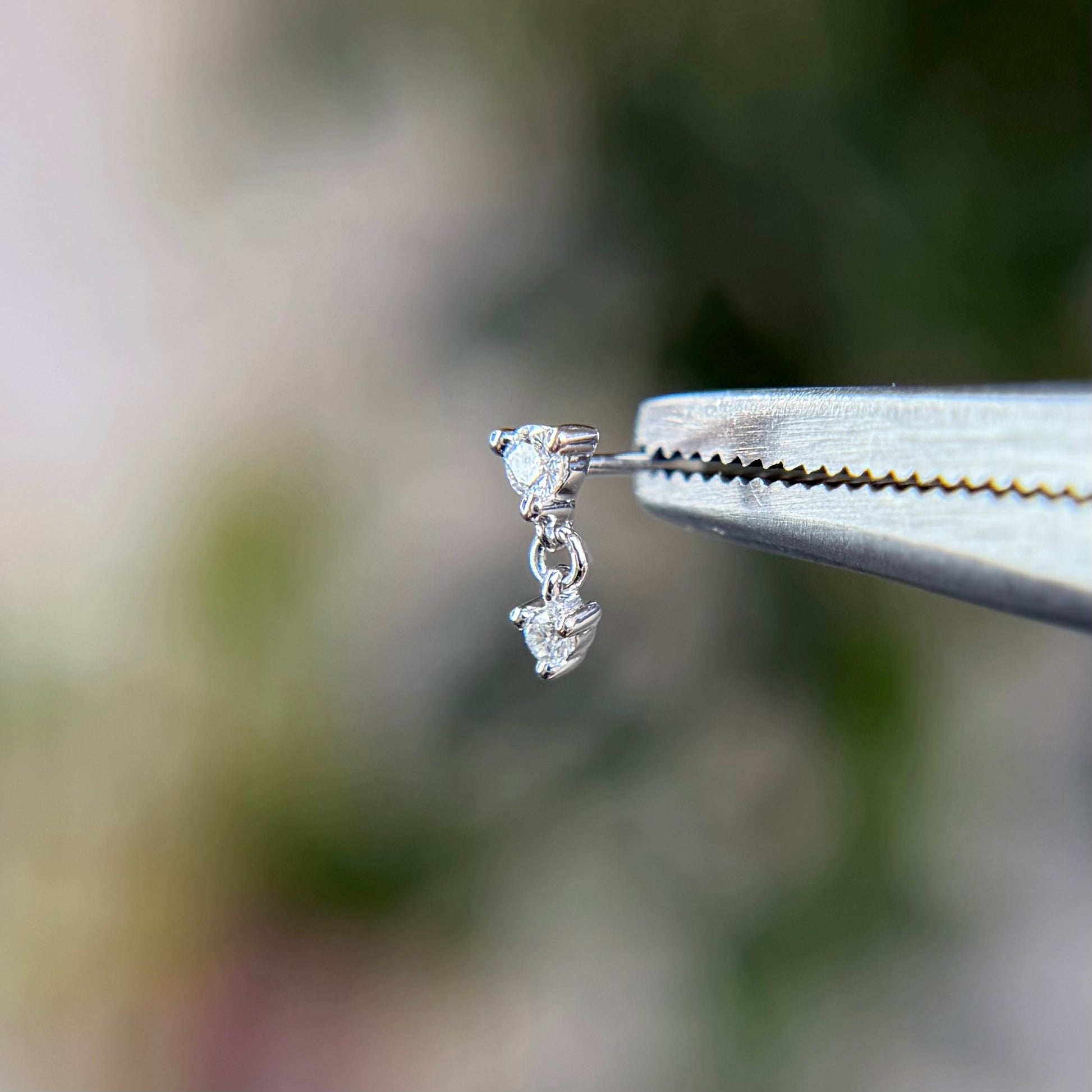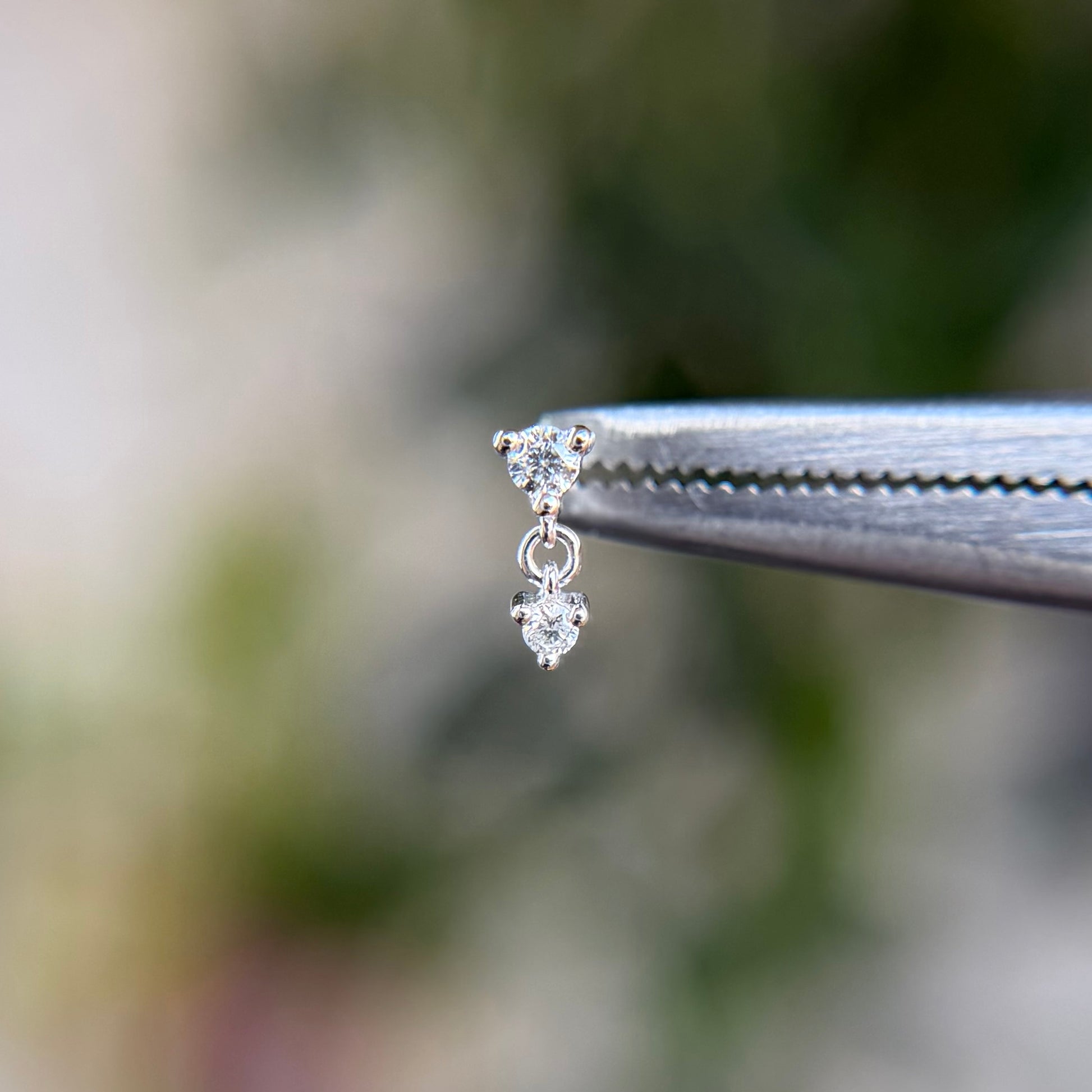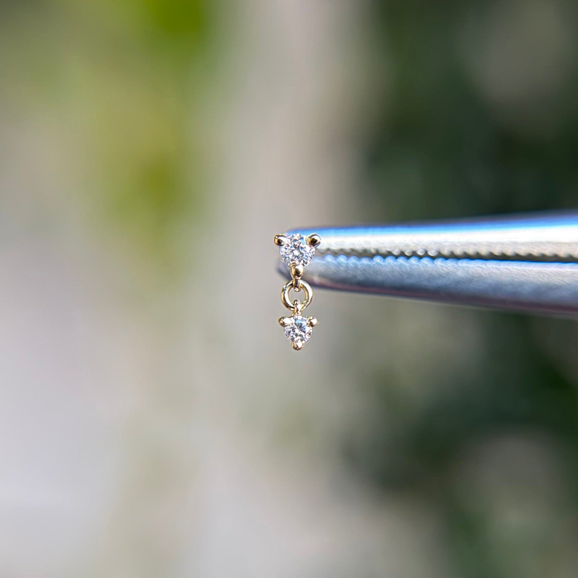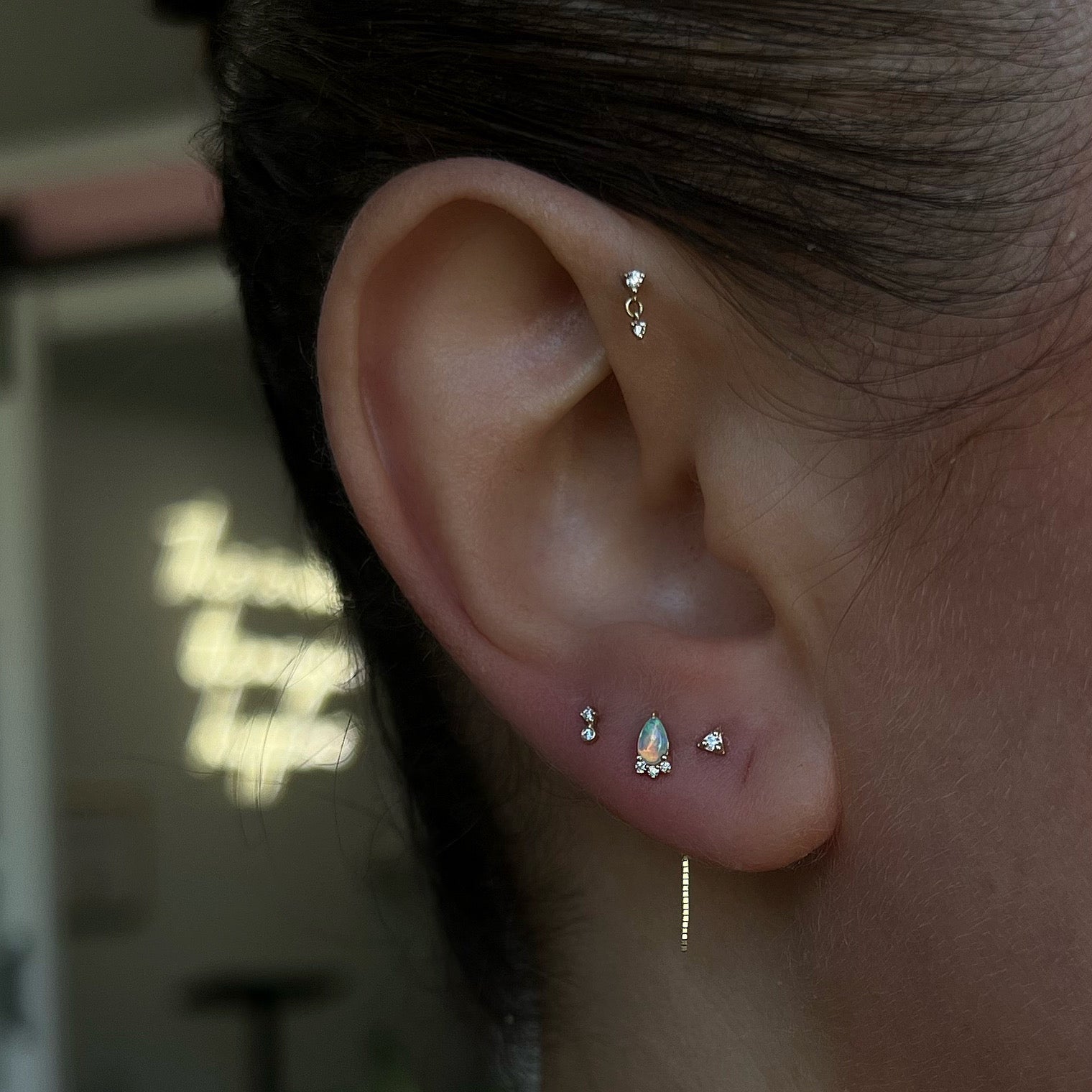 - Shown in forward helix in 14k yellow gold and upper ear in 14k white gold