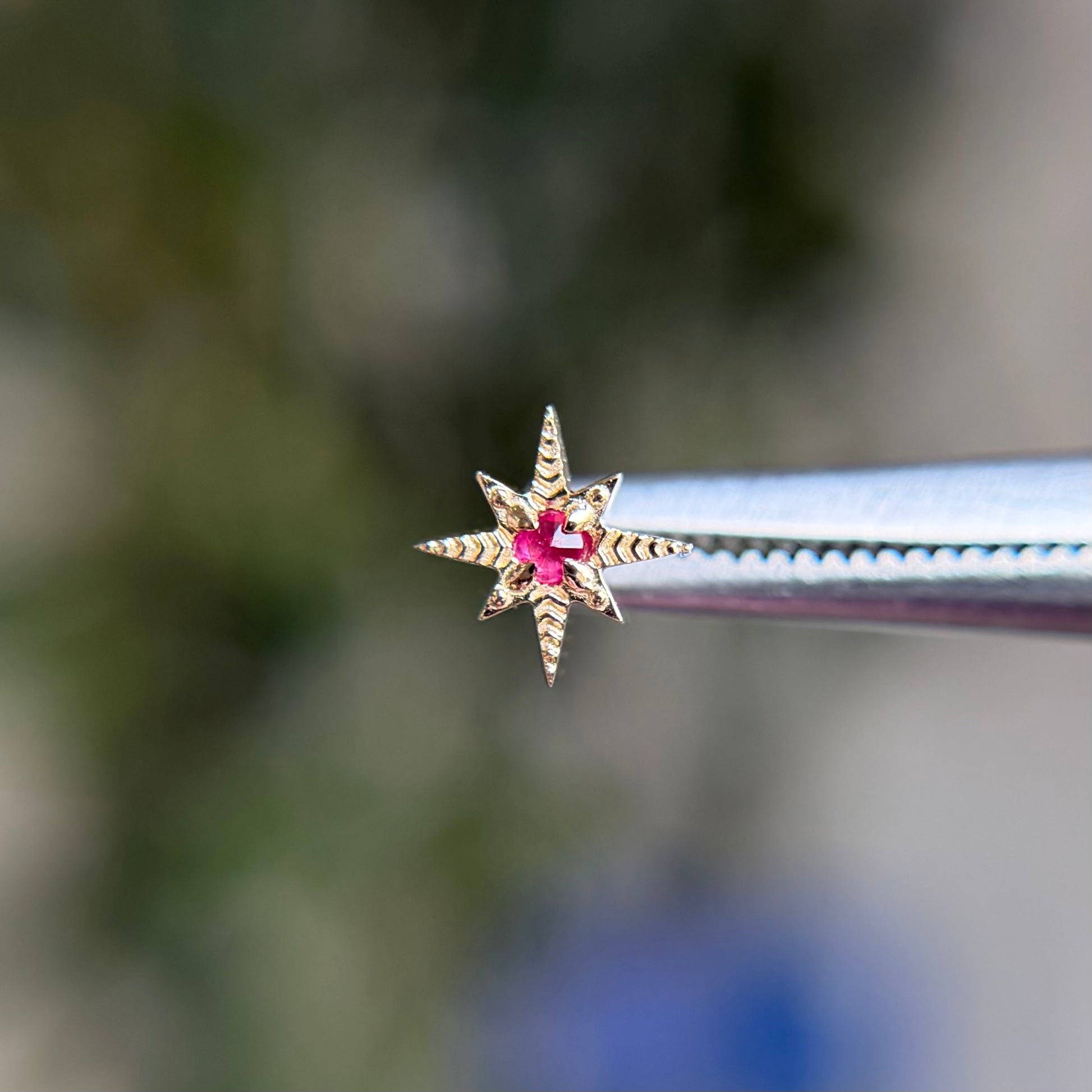 - Stone: 1.5mm Reverse-set Ruby or 1.5mm Reverse-set Emerald