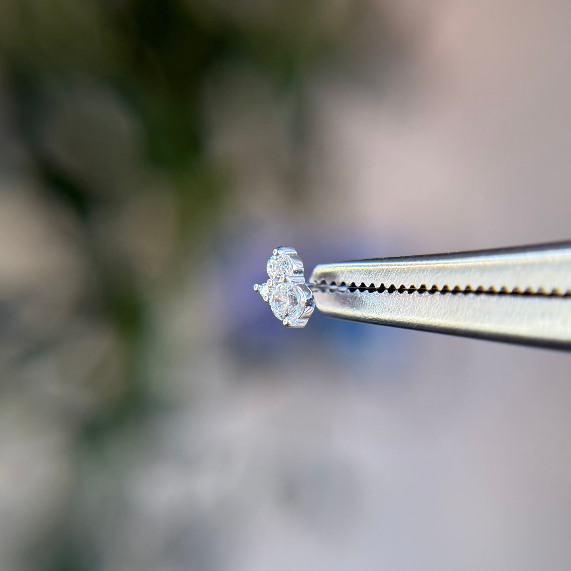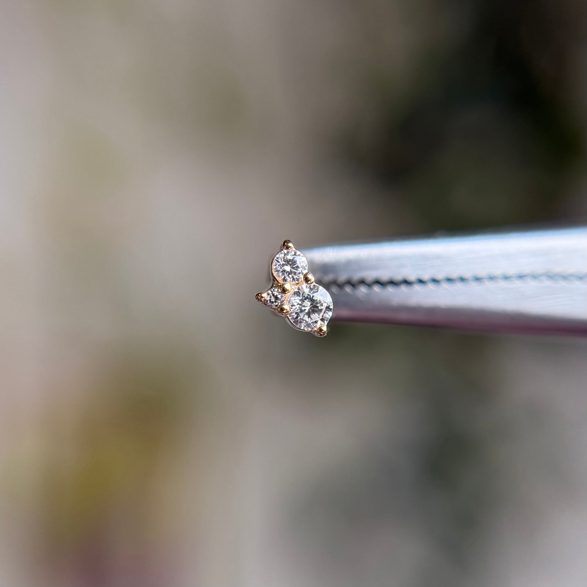 - Gemstones: (1) 0.8mm Brilliant Round CZ, (1) 1.5mm Brilliant Round CZ & (1) 2.0mm Brilliant Round CZ
