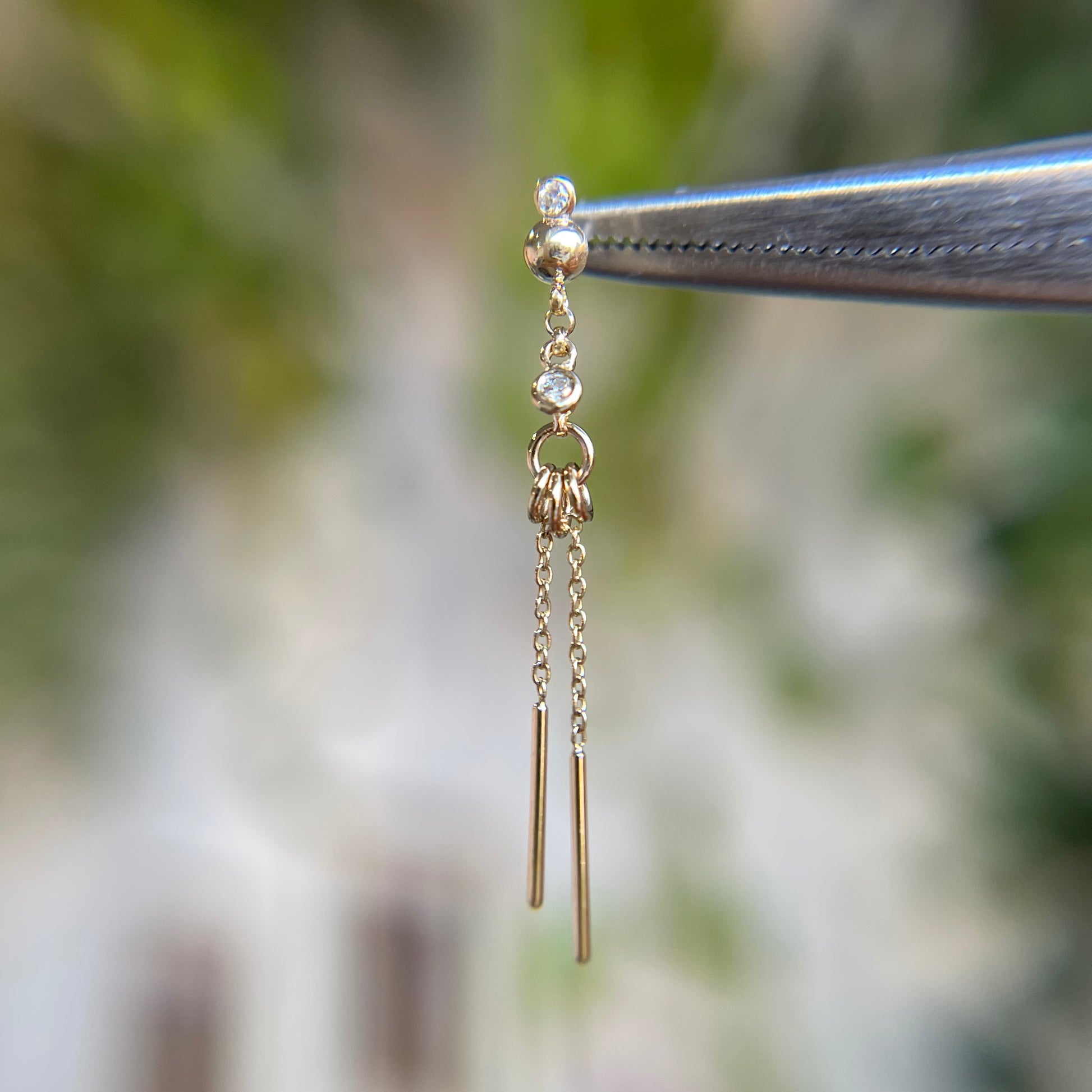 - Available in 14k Solid Yellow or White gold with a combination of diamonds, solid gold jump rings, and dangling chains