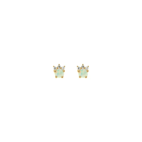 - Available in solid 14k yellow gold with 1 cabochon opal gemstone and 3 diamonds