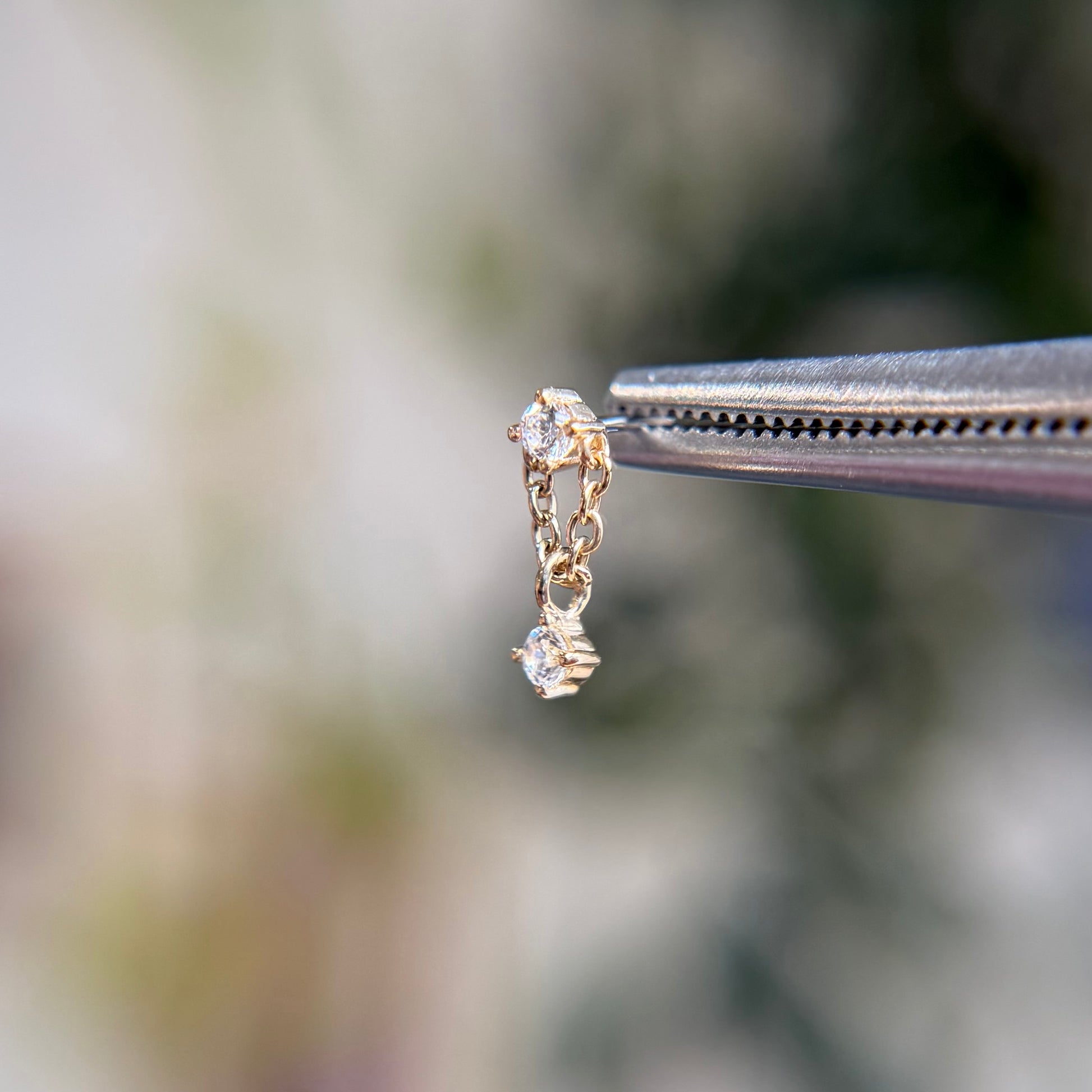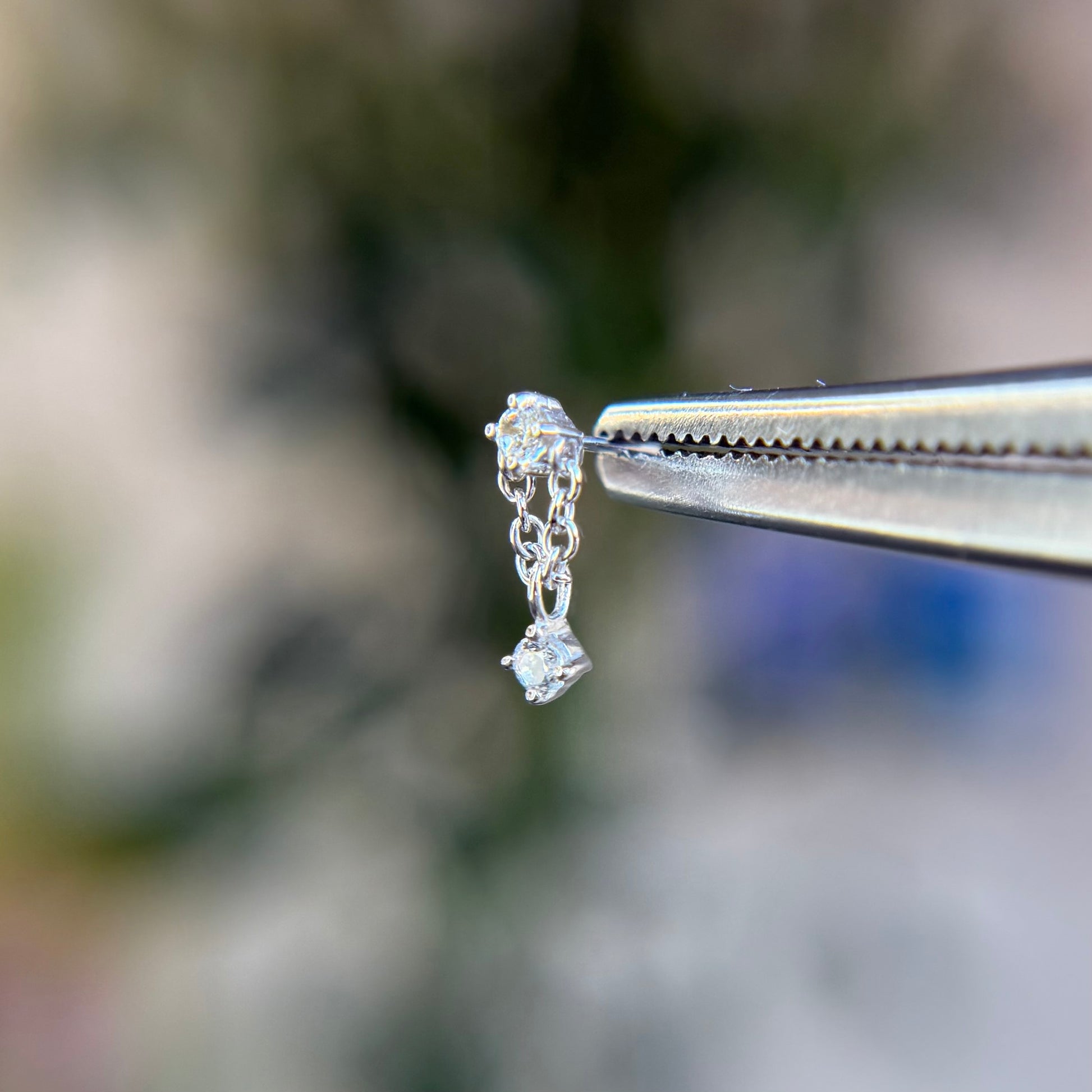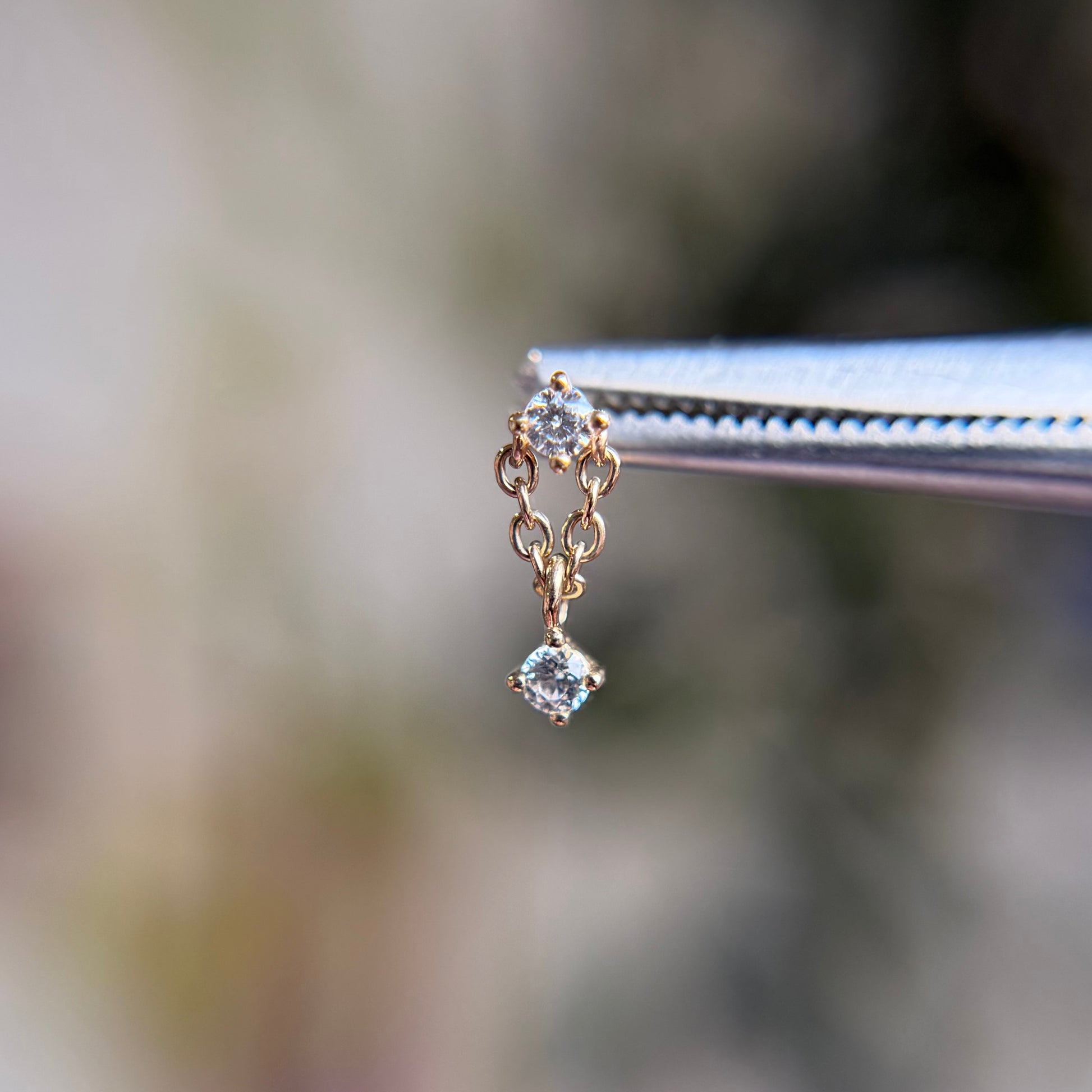 - Shown in first lobe piercing in 14k white gold