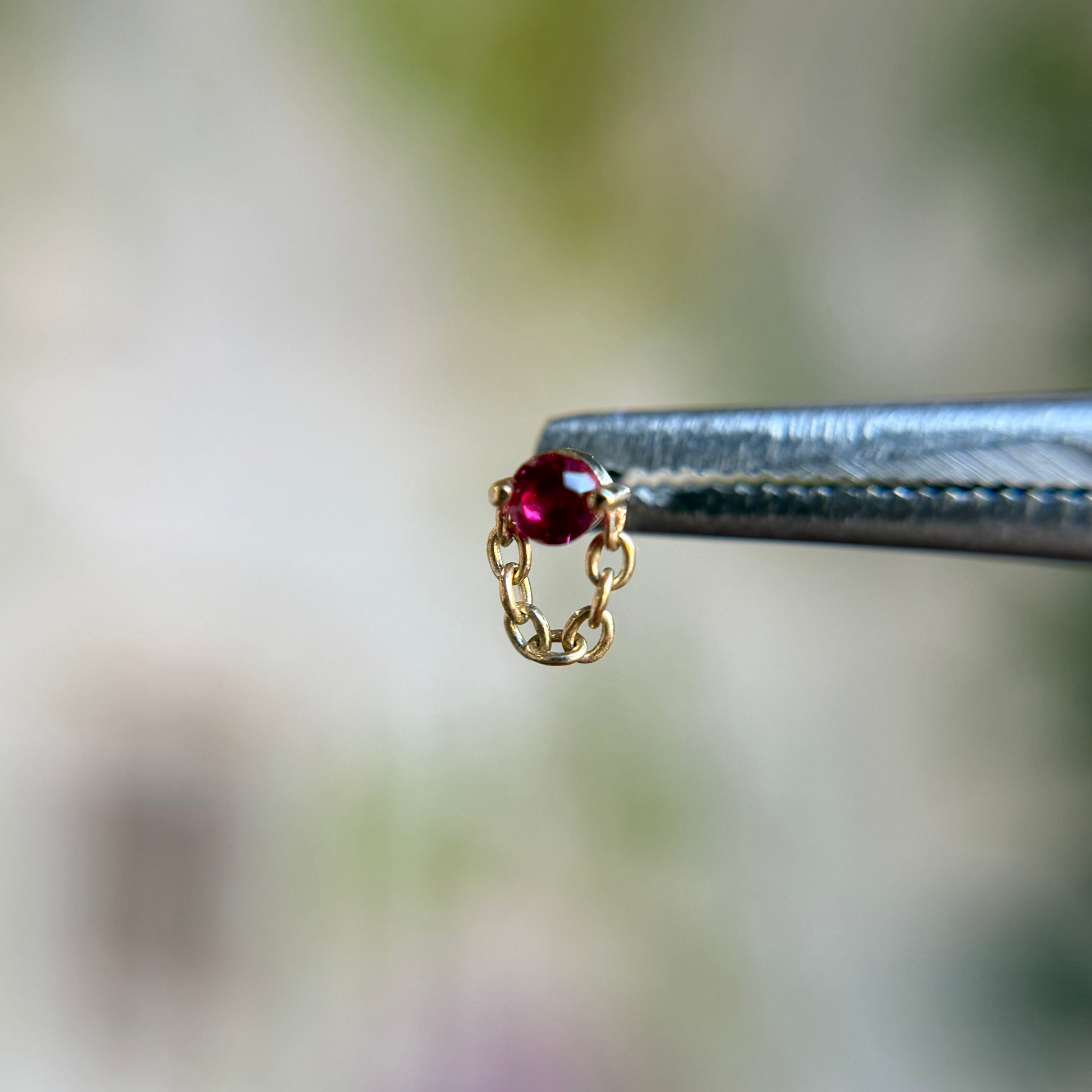 - Available in 14k Solid Yellow gold with (1) 2.5mm prong set Ruby gemstone
