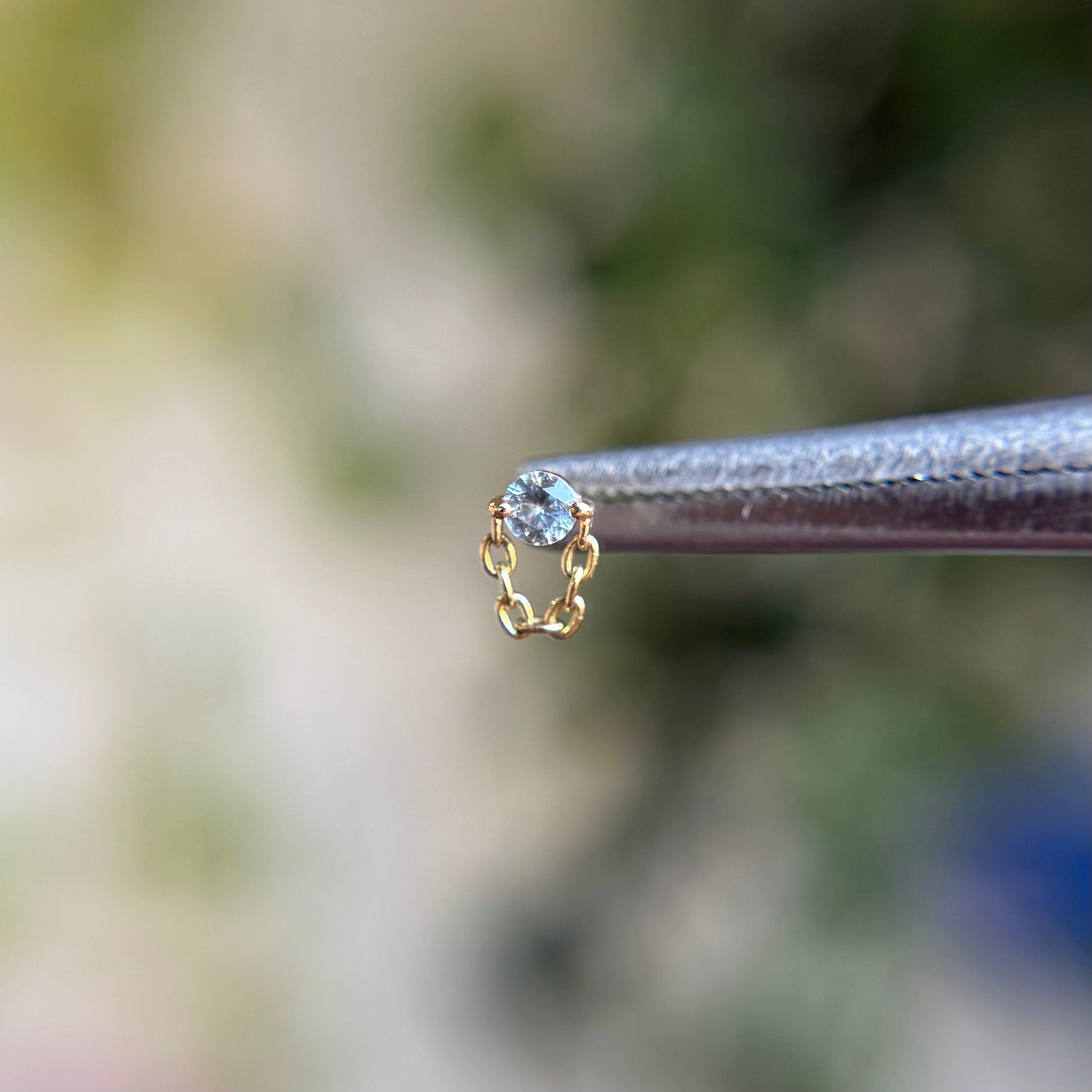 - Available in 14k Solid Yellow gold with (1) 2.5mm prong set genuine White Sapphire gemstone