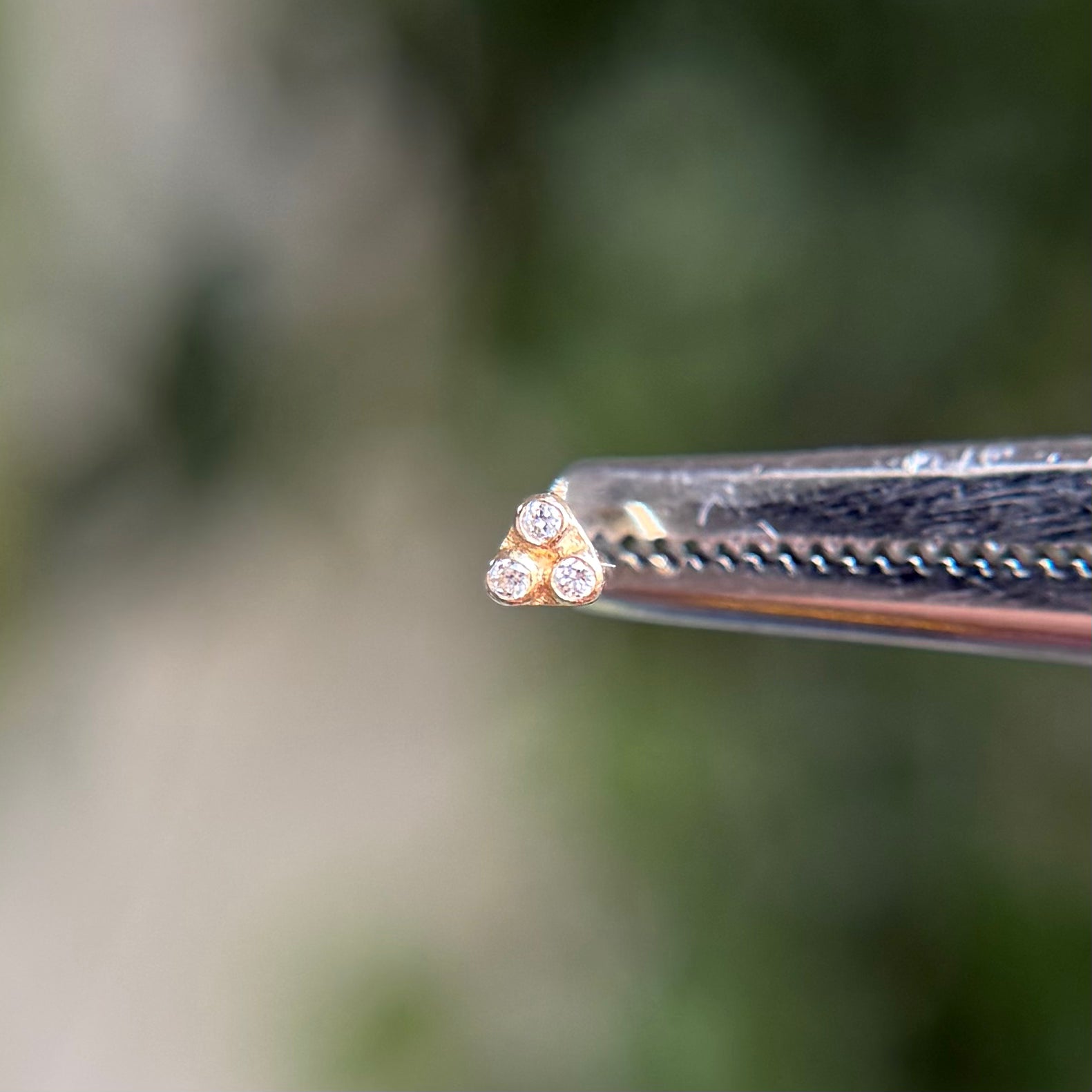 - Available in 14k Yellow gold with (3) 1mm bezel-set genuine diamonds