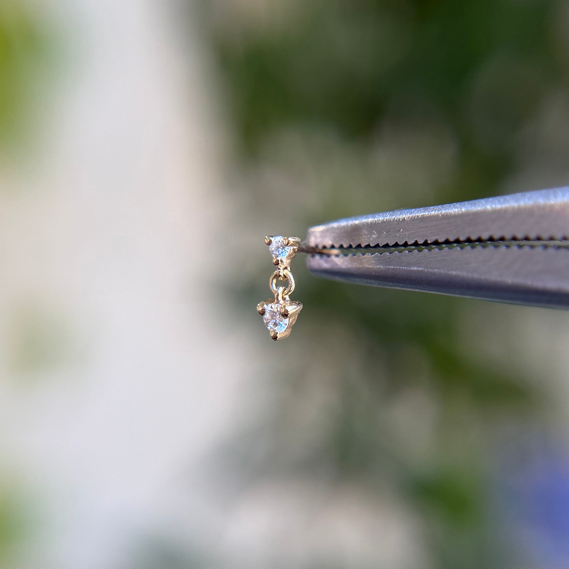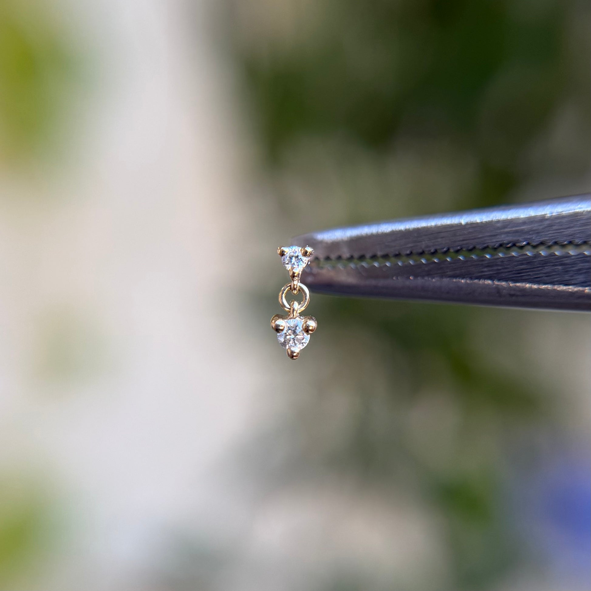 - Gemstones: (1) small genuine diamond & (1) larger genuine diamond