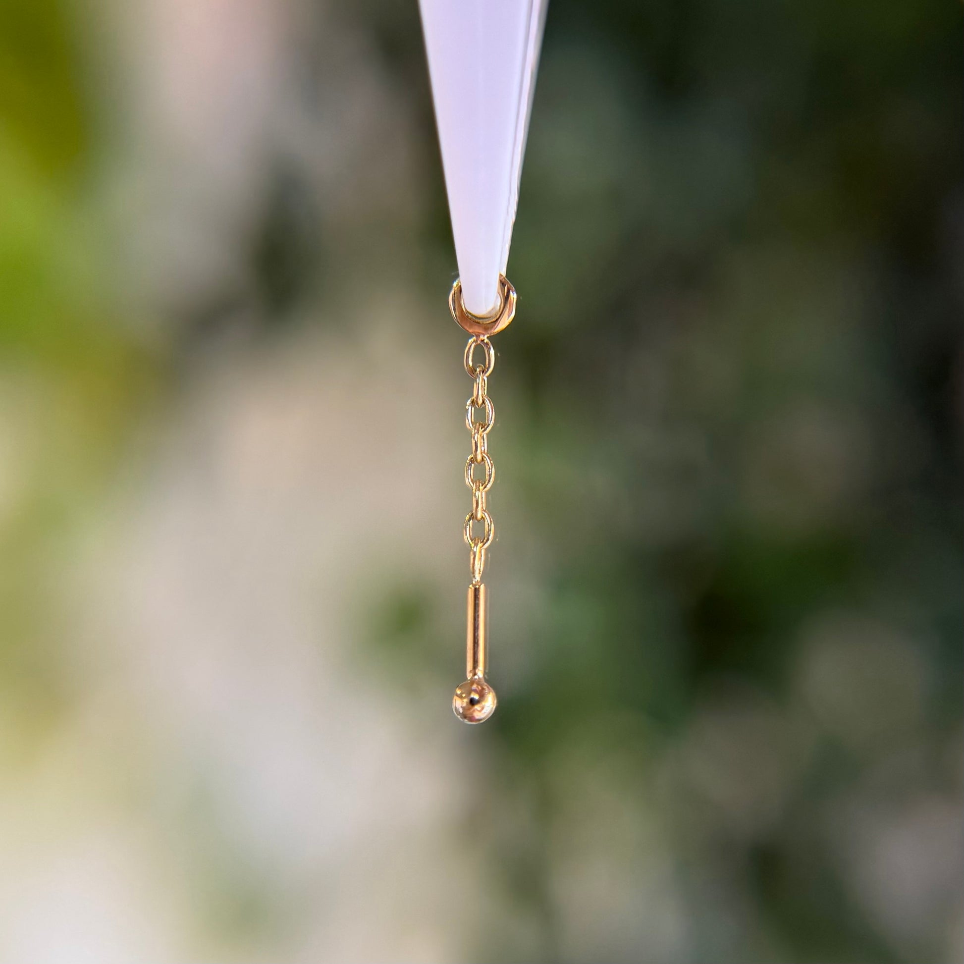 - Shown dangling from a hoop in upper ear piercing