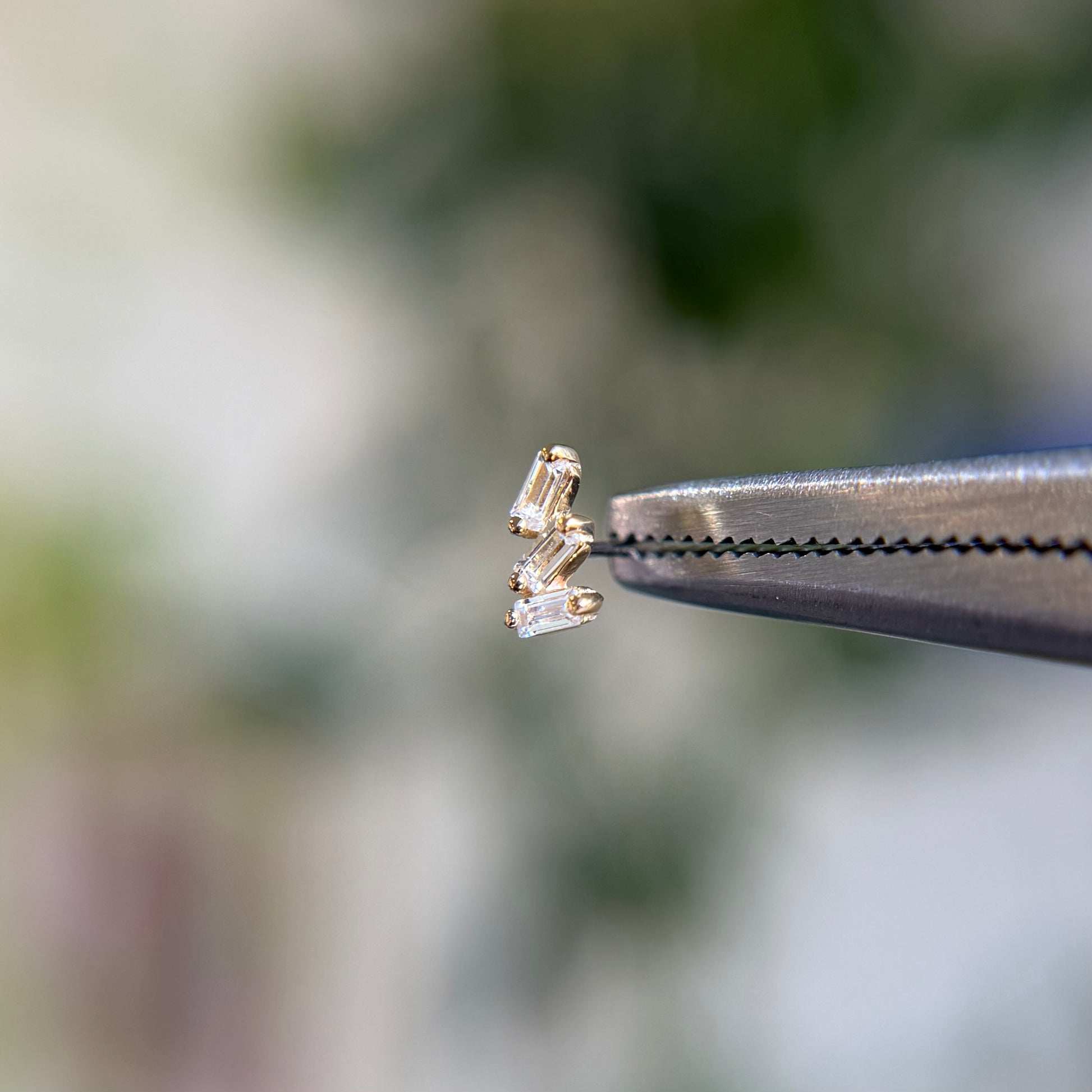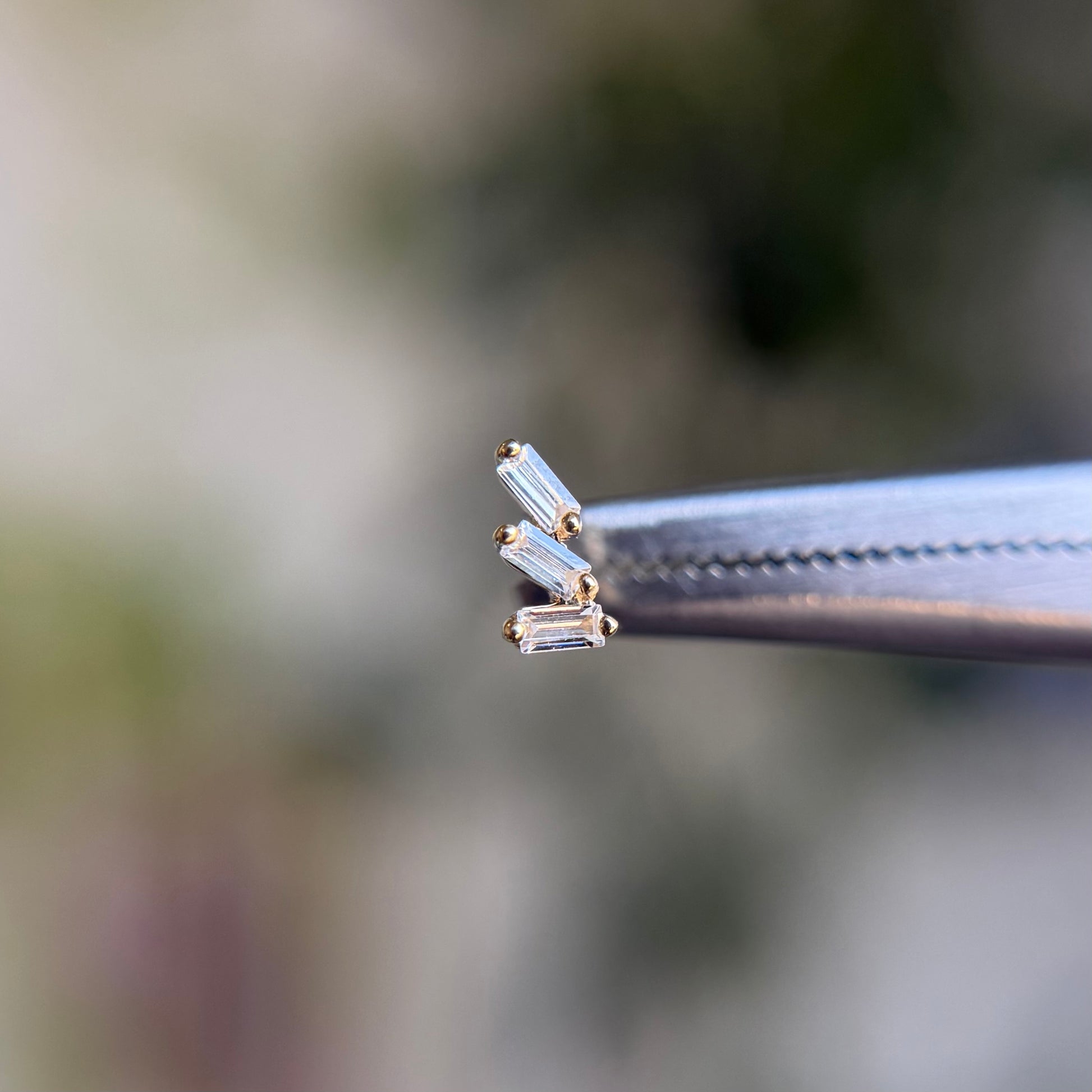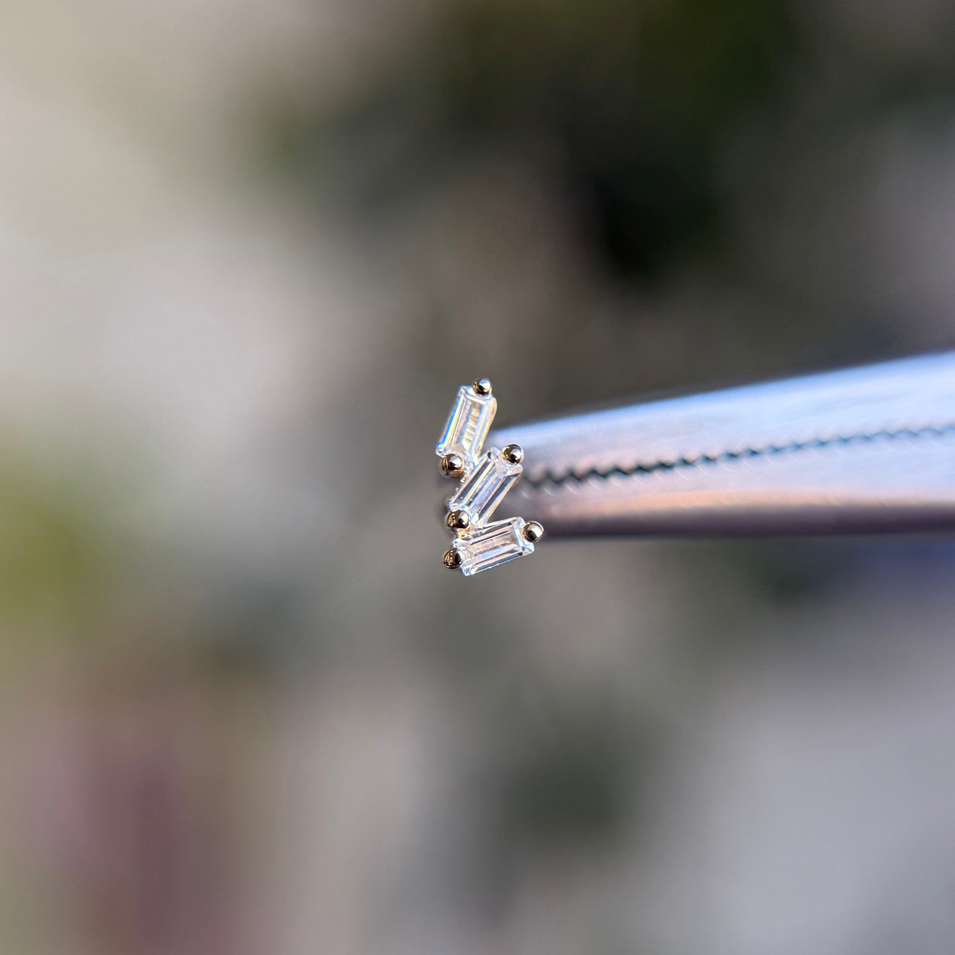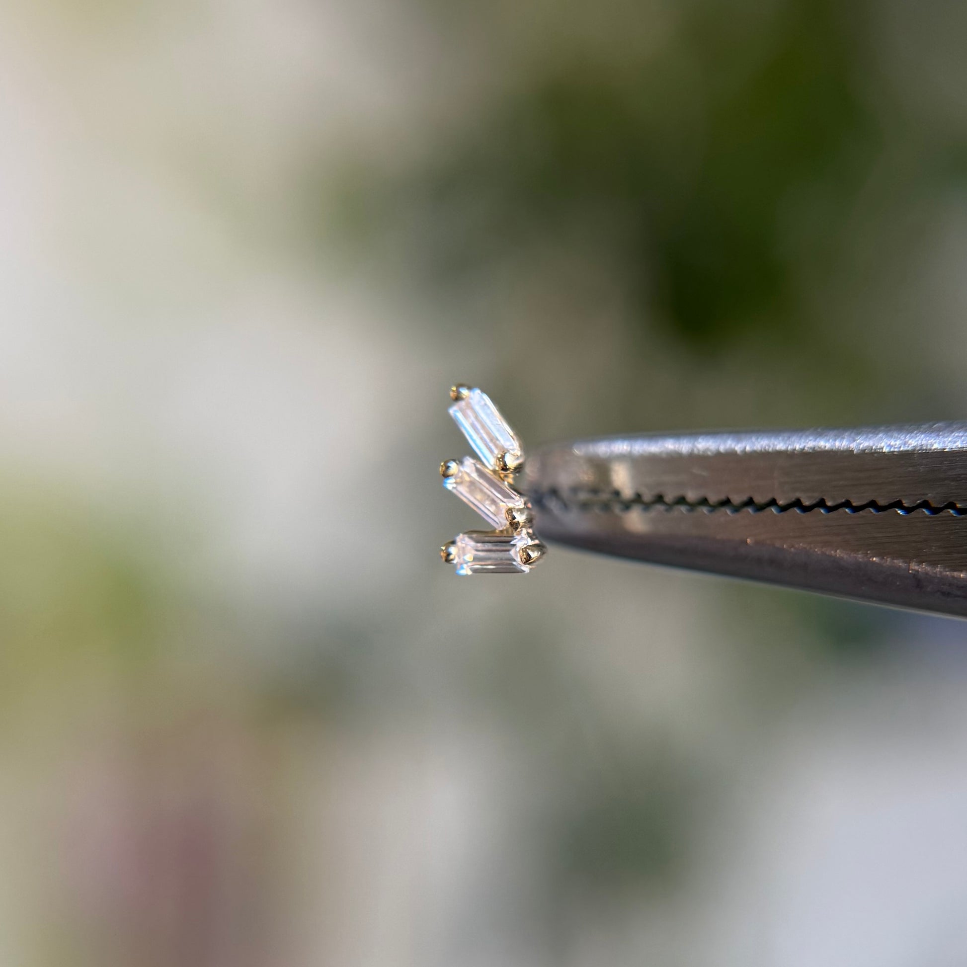 - Gemstones: (3) 1.5mm x .5mm cubic zirconias